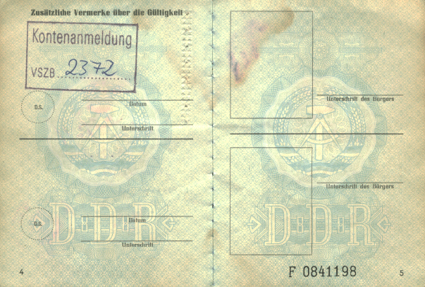 Seite 4 und 5 eines Personalausweises der Deutschen Demokratischen Republik aus dem Jahr 1990. 1:1 eingescannt